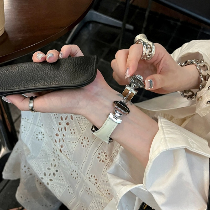 上質で柔らかいしレザーを使用し、マグネット式でサイズ調節も簡単!手首に快適にフィットします。