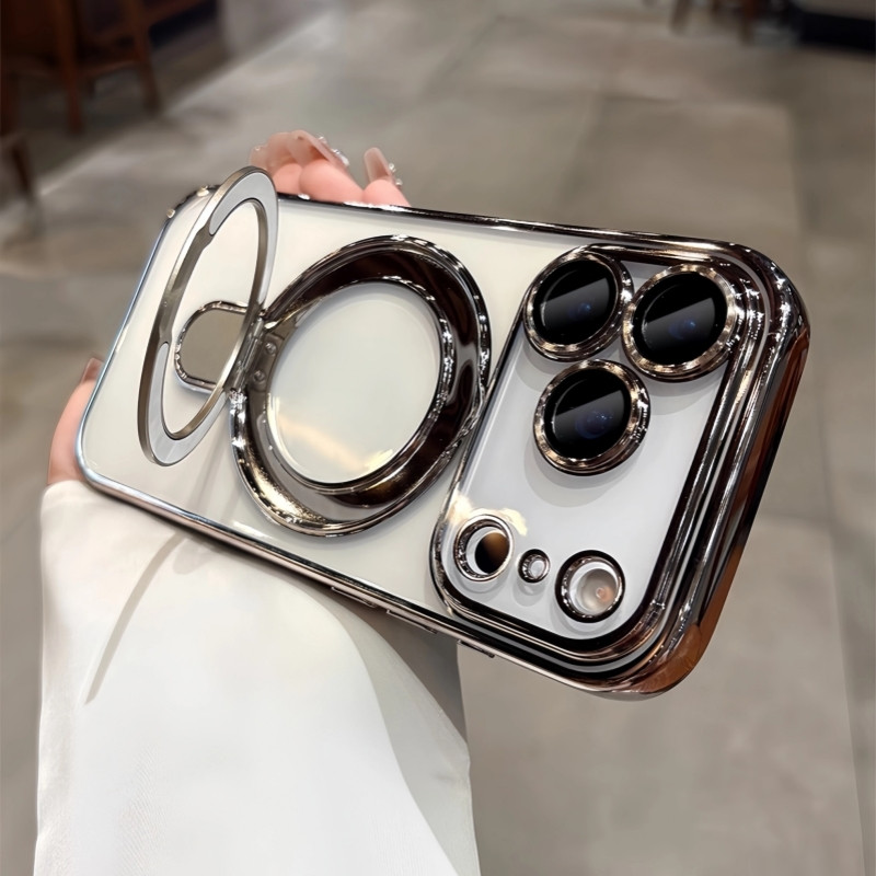 iphone17pro マグセーフ 対応 ケース iphone ケース スタンド 付き magsafe 対応 ケース おすすめ iphone16pro max/15/14 ケース カメラ 保護 付き iphoneケースクリアおしゃれ メッキ
